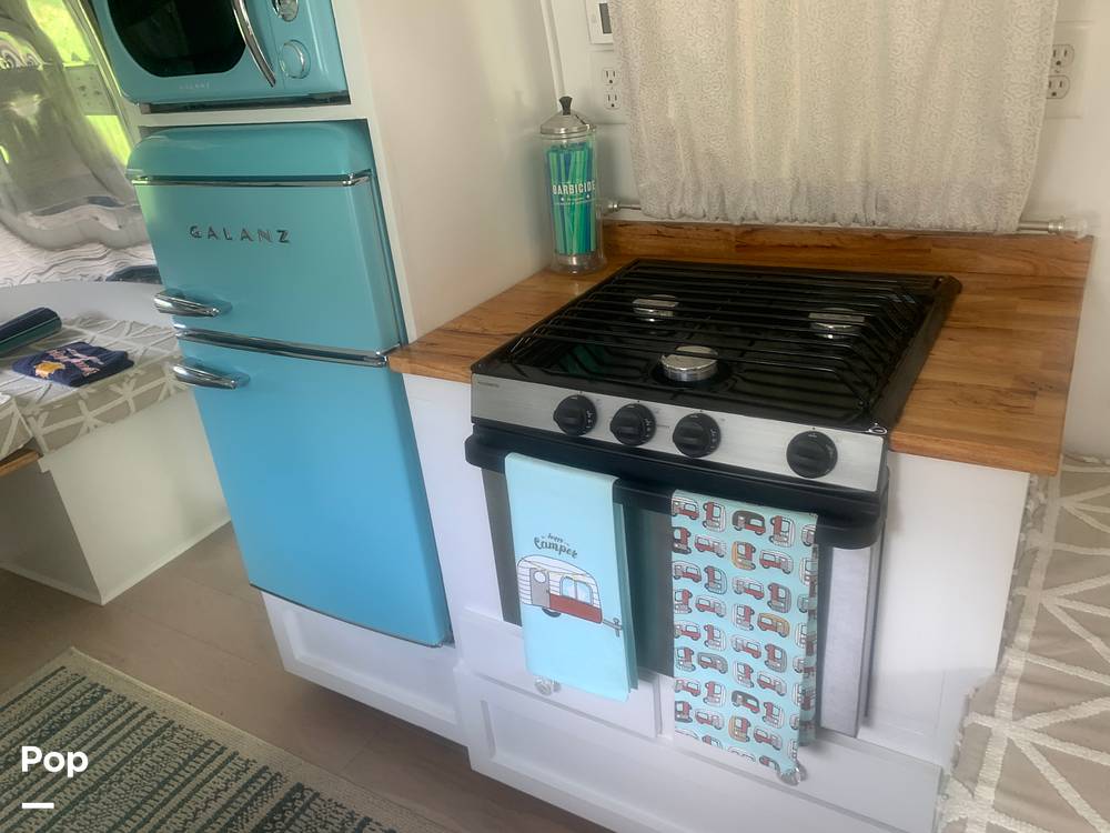Inside, the Caravel comfortably sleeps four, making it ideal for families or small groups of friends. The cleverly designed interior maximizes space and functionality, featuring a cozy sleeping area, a compact yet efficient kitchenette, and a charming dinette that converts into additional sleeping space. The vintage aesthetic is complemented by modern upgrades, ensuring you have all the conveniences you need while maintaining the classic Airstream appeal.