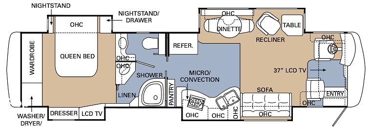 Measuring an impressive 35 feet in length, this motorhome offers ample space for relaxation and entertainment. The interior boasts premium furnishings and a well-appointed kitchen, making it easy to prepare meals on the go. The living area is designed for comfort, featuring plush seating and state-of-the-art entertainment options. Whether you're lounging after a day of exploration or hosting a cozy evening with loved ones, this RV provides the perfect setting.