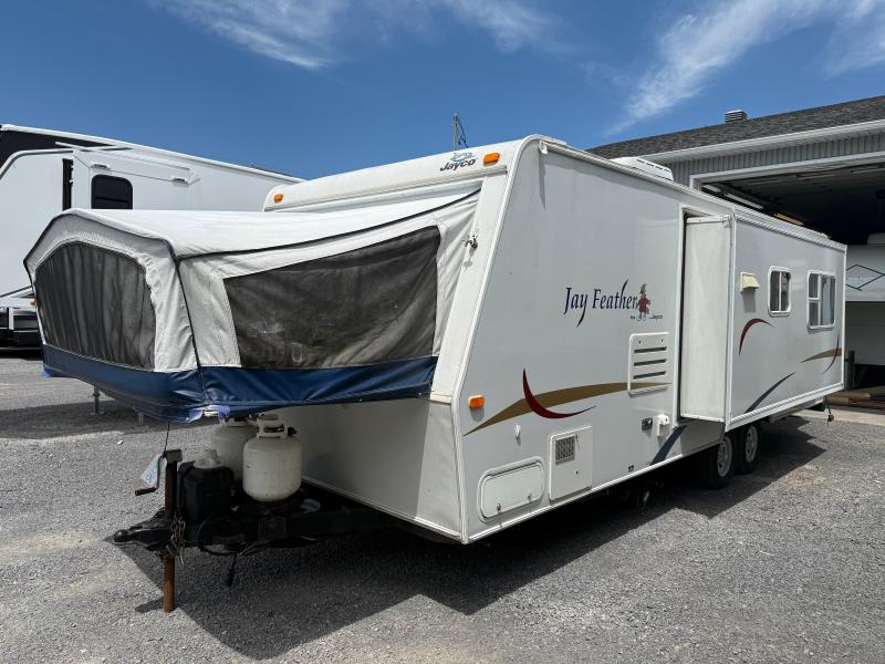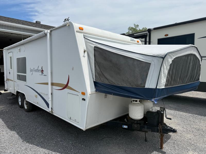 Discover the perfect blend of comfort and adventure with the 2006 Jayco Jay Feather 25E Hybrid. This versatile RV is designed for those who crave the open road without sacrificing the comforts of home. At 25 feet long, it offers ample space for family and friends, making it an ideal choice for weekend getaways or extended road trips. The Jay Feather 25E combines the best of both worlds with its hybrid design, featuring expandable sleeping areas that provide the coziness of a tent with the security and amenities of a traditional RV.