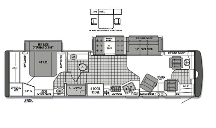 Inside, you'll find a thoughtfully designed interior that combines elegance with practicality. The spacious living area is perfect for relaxation, featuring plush seating and a well-appointed kitchen equipped with modern appliances, allowing you to prepare meals with ease. The dining area provides a comfortable space for family meals or game nights, while the ample storage throughout ensures you can bring along all your essentials and more. The sleeping quarters are designed to offer privacy and comfort, with a master suite and additional sleeping options to suit your needs.
