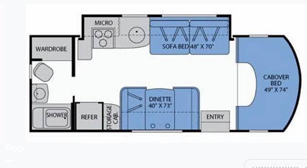 Step inside to find a thoughtfully designed interior that maximizes space and functionality. The well-equipped kitchen features a refrigerator, stove, and microwave, allowing you to prepare delicious meals on the go. The cozy dining area transforms into a sleeping space, while the overhead cab and rear sleeping quarters ensure everyone has a comfortable place to rest. With ample storage throughout, you can bring along all your essentials without sacrificing space.