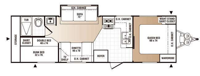 Measuring approximately 27 feet in length, this travel trailer features a single slide-out that expands the living area, providing ample room for relaxation and entertainment. Inside, you'll find a well-appointed interior with sleeping arrangements that include a master bedroom, bunk beds, and convertible seating areas. The efficient design ensures that everyone has a cozy place to rest after a day of exploration. The kitchen is equipped with essential appliances and storage solutions, making meal preparation a breeze.