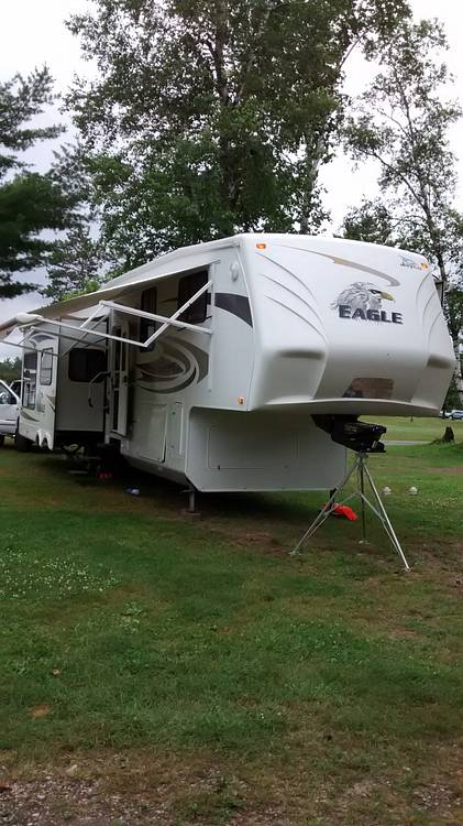 Discover the perfect blend of comfort and adventure with the 2010 Jayco Eagle M-351 RLTS Fifth Wheel. This meticulously maintained RV is designed to offer a home-like experience on the road, making it an ideal choice for families or couples seeking a reliable and spacious travel companion. With a length of 32 feet, this fifth wheel provides ample space for relaxation and entertainment, ensuring that every journey is as enjoyable as the destination.