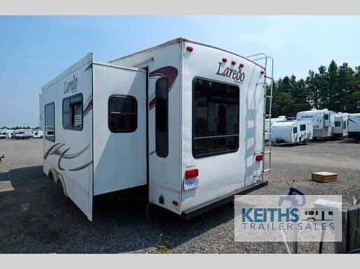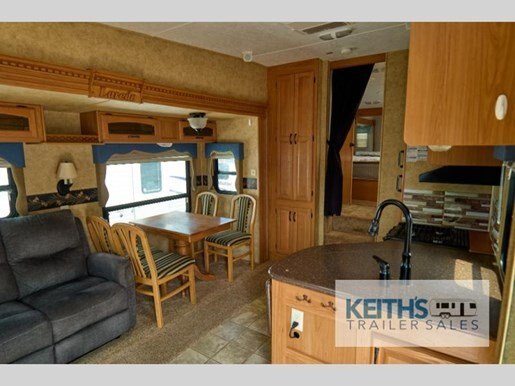 Introducing the 2010 Keystone RV Laredo 266RL, a distinguished travel companion designed for those who seek both comfort and adventure. This meticulously maintained recreational vehicle offers a harmonious blend of functionality and style, making it an ideal choice for seasoned travelers and newcomers alike. With a length of 29 feet, this RV provides ample space for relaxation and entertainment, ensuring that every journey is as enjoyable as the destination. Step inside to discover a thoughtfully designed interior that maximizes space and comfort. The living area is adorned with plush seating, perfect for unwinding after a day of exploration. The well-appointed kitchen features modern appliances, including a refrigerator and microwave, ensuring that meal preparation is both convenient and enjoyable. The dining area comfortably accommodates family and friends, fostering an inviting atmosphere for shared meals and conversations. The RV's sleeping quarters offer a serene retreat, with a spacious bed and ample storage, ensuring restful nights on the road. The Keystone Laredo 266RL is engineered for reliability and ease of use, with a robust construction that promises durability and longevity. Its exterior is designed to withstand the elements, while the interior boasts high-quality finishes that reflect a commitment to excellence. Additional features include a well-equipped bathroom with a shower, ensuring all the comforts of home are readily available. Whether you are embarking on a cross-country adventure or a weekend getaway, this RV is equipped to meet your needs with style and grace. Experience the freedom of the open road with the 2010 Keystone RV Laredo 266RL, where every journey becomes a cherished memory.