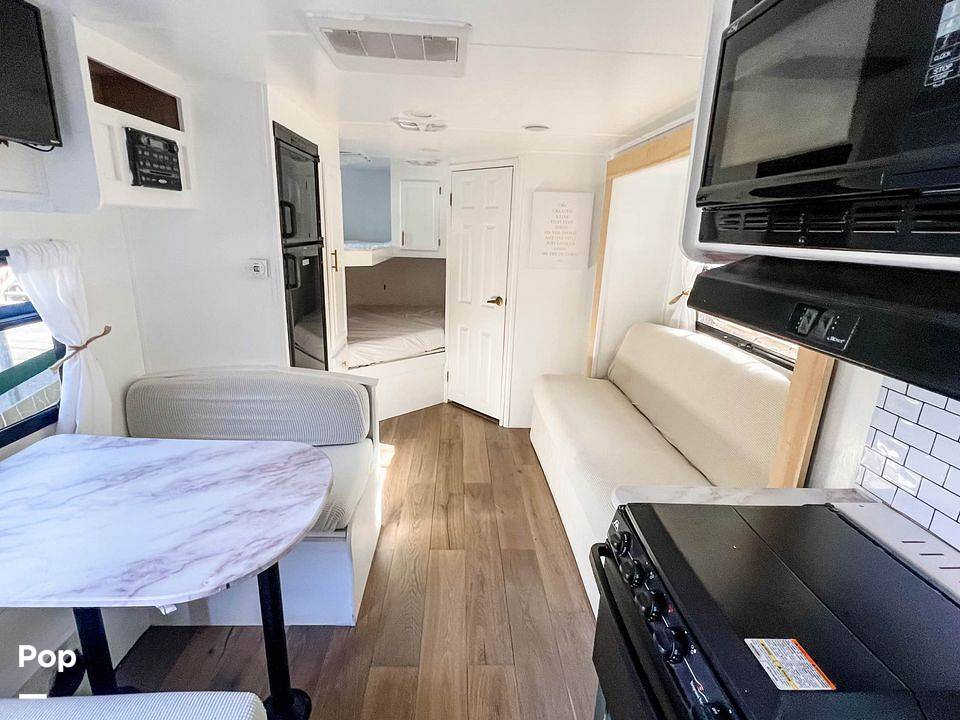 Introducing the 2011 EverGreen Ever-Lite 32MKS Travel Trailer, a remarkable blend of comfort and functionality designed to elevate your travel experiences. This meticulously crafted travel trailer offers an impressive sleeping capacity for up to nine occupants, making it an ideal choice for families or groups seeking adventure without compromising on comfort. With a length of 28 feet, this trailer provides ample space for relaxation and entertainment, ensuring that every journey is as enjoyable as the destination.