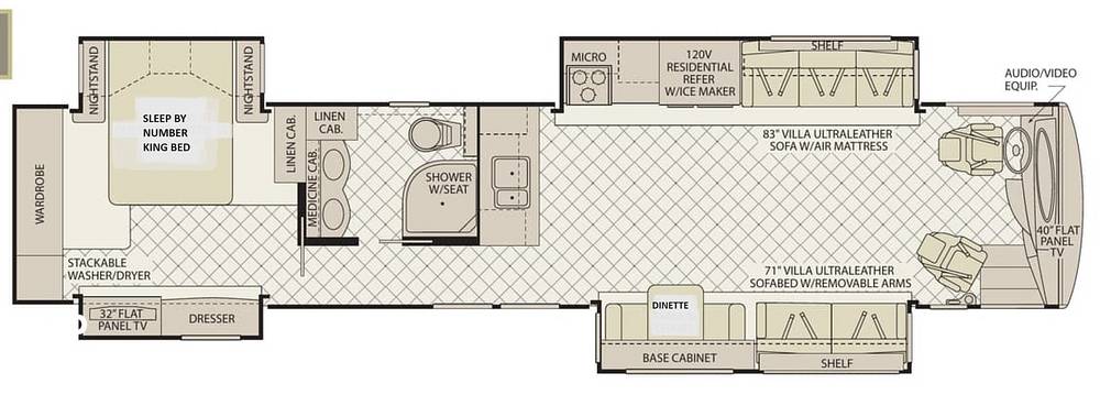Discover the open road in style and comfort with the 2011 Fleetwood American Tradition 45Y Class A motorhome. This luxurious RV is your perfect travel companion, offering a blend of elegance and functionality that makes every journey memorable. With a spacious interior designed to sleep four comfortably, it's ideal for family adventures or a getaway with friends. The thoughtful layout ensures everyone has their own space to relax and unwind after a day of exploring.