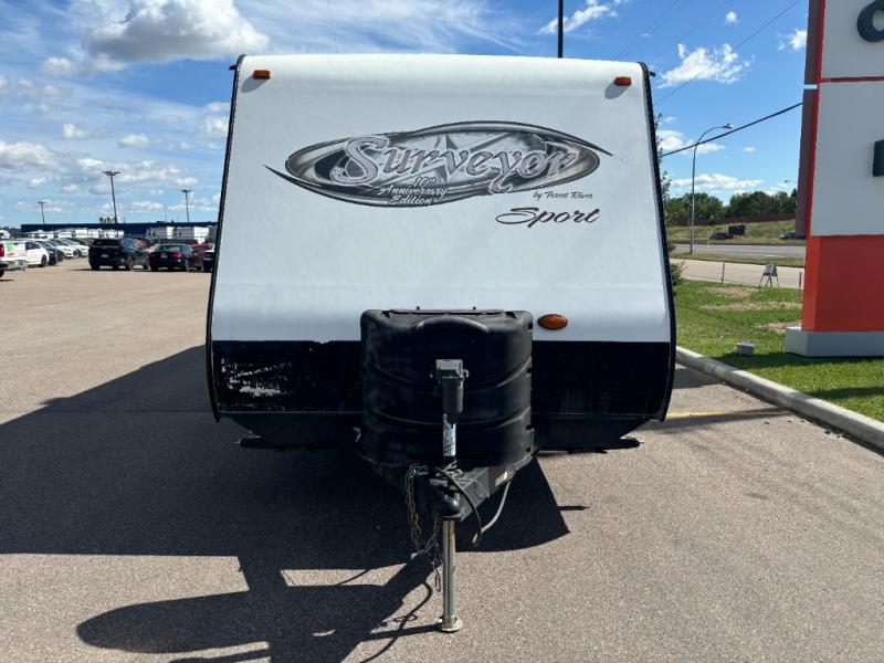 Discover the perfect blend of comfort and adventure with the 2012 Forest River RV Surveyor Sport SP-275 Travel Trailer. This meticulously maintained travel trailer, with an odometer reading of just 80,467 kilometers, offers an exceptional opportunity for those seeking a reliable and spacious mobile retreat. Measuring approximately 24 feet in length, this RV is designed to provide ample living space while remaining easy to maneuver on the road.
