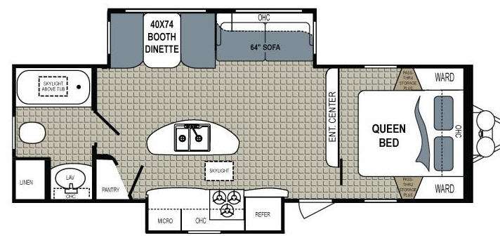 Step inside to find a thoughtfully designed interior that maximizes space and functionality. The Kodiak 276BHSL boasts a spacious living area with a cozy dinette and a plush sofa, perfect for relaxing after a day of exploration. The well-equipped kitchen features a refrigerator, microwave, and a three-burner stove, making meal preparation a breeze. With a sleeping capacity for up to eight people, including a comfortable queen bed and bunk beds, this RV ensures everyone has a restful night’s sleep. The bathroom is equipped with a shower and toilet, providing all the comforts of home.