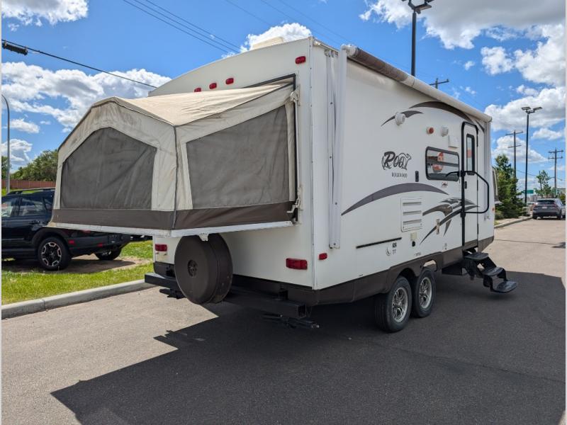 The Rockwood Roo 2155 boasts a thoughtfully designed interior that maximizes space and functionality. Measuring 22 feet in length, this tent trailer offers ample room for family and friends. The well-appointed living area features a cozy dinette and a fully equipped kitchenette, complete with a refrigerator, stove, and microwave. The sleeping quarters are designed for relaxation, with comfortable beds that ensure a restful night's sleep after a day of adventure. Additionally, the trailer includes a convenient bathroom with essential amenities, making it ideal for extended trips.