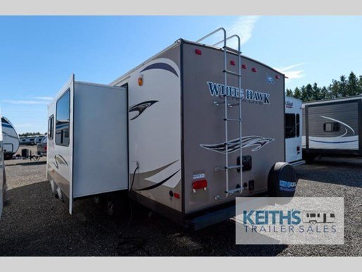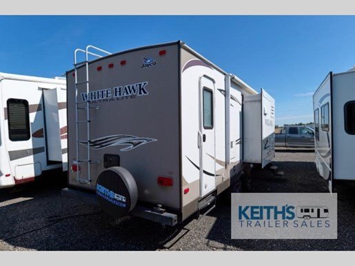 Discover the perfect blend of comfort and adventure with this 2013 Jayco White Hawk 27DSRB. This well-maintained RV is 27 feet long, offering ample space for your travel needs. Designed for both short getaways and extended trips, it features a spacious interior that comfortably accommodates up to six people. The RV's thoughtful layout includes a cozy queen-sized bed, a convertible dinette, and a sofa bed, ensuring everyone has a comfortable place to rest.