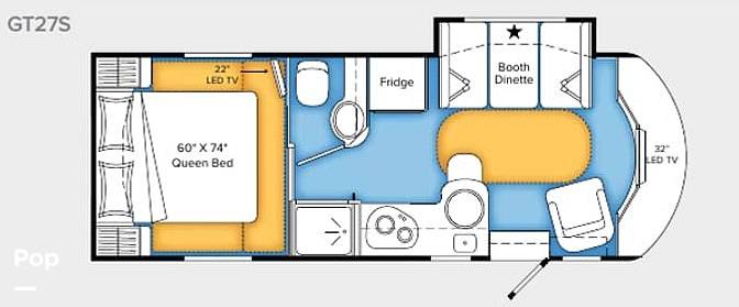 Inside, the Regency GT27S comfortably accommodates up to four people, making it ideal for families or couples seeking adventure. The well-appointed interior features a cozy sleeping area, a fully equipped kitchen, and a comfortable dining space. The kitchen comes complete with modern appliances, including a refrigerator, stove, and microwave, ensuring you can prepare meals with ease. The dining area, which converts into an additional sleeping space, offers a welcoming spot to enjoy meals or relax after a day of exploration.