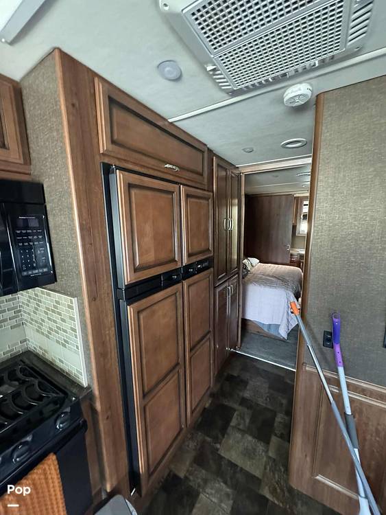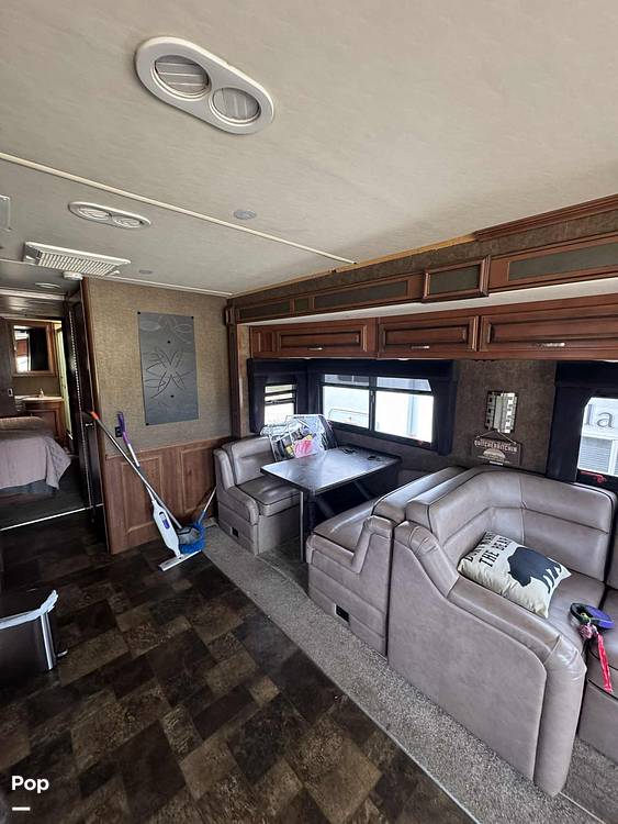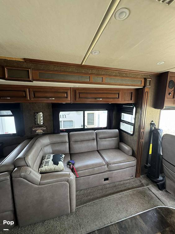 Step inside and be greeted by a thoughtfully designed interior that combines functionality with style. The spacious living area features plush seating and a well-equipped kitchen, complete with modern appliances, making meal preparation a breeze. The RV's intelligent layout includes a master bedroom with a queen-sized bed, a convertible dinette, and a sofa bed, providing versatile sleeping arrangements to suit your needs. The bathroom is equipped with all the essentials, ensuring you have the comforts of home wherever you roam.