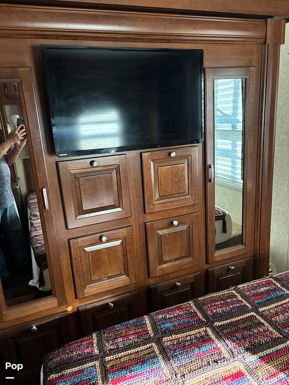 Step inside to find a well-appointed living area featuring high-quality furnishings and thoughtful design. The Georgetown 351DS boasts a fully equipped kitchen with modern appliances, including a refrigerator, microwave, and stove, ensuring you can prepare meals with ease. The cozy dining area is perfect for enjoying meals together or planning your next adventure. The sleeping arrangements include a comfortable master bedroom with a queen-sized bed, a convertible sofa bed, and a dinette that transforms into an additional sleeping space, ensuring everyone has a restful night’s sleep.