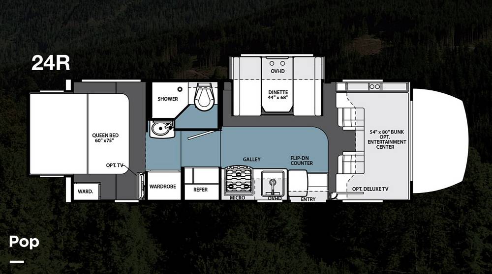 Inside, the Solera 24R comfortably sleeps up to five people, making it ideal for family adventures or trips with friends. The intelligently designed floor plan includes a cozy sleeping area, a convertible dinette, and an overhead bunk, ensuring everyone has a comfortable place to rest. The kitchen is equipped with essential appliances, allowing you to prepare meals with ease, while the bathroom offers a full shower and toilet, providing the comforts of home on the road.