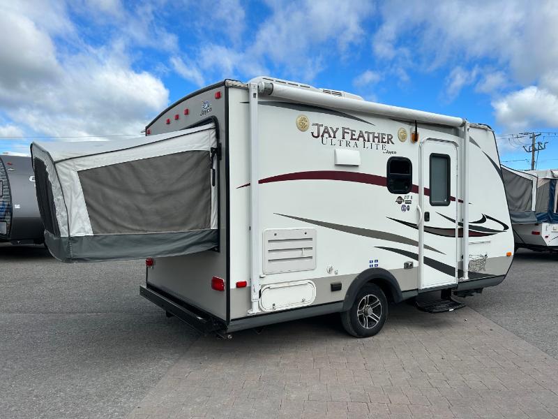 Discover the perfect blend of comfort and adventure with the 2014 Jayco Jay Feather X17A Hybrid! This versatile RV offers the ideal solution for those who crave the freedom of the open road without sacrificing the comforts of home. Measuring approximately 15 feet in length, this compact yet spacious hybrid travel trailer is designed to provide an exceptional camping experience for families and adventurers alike.