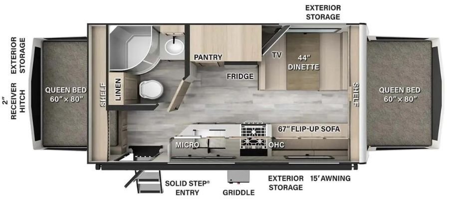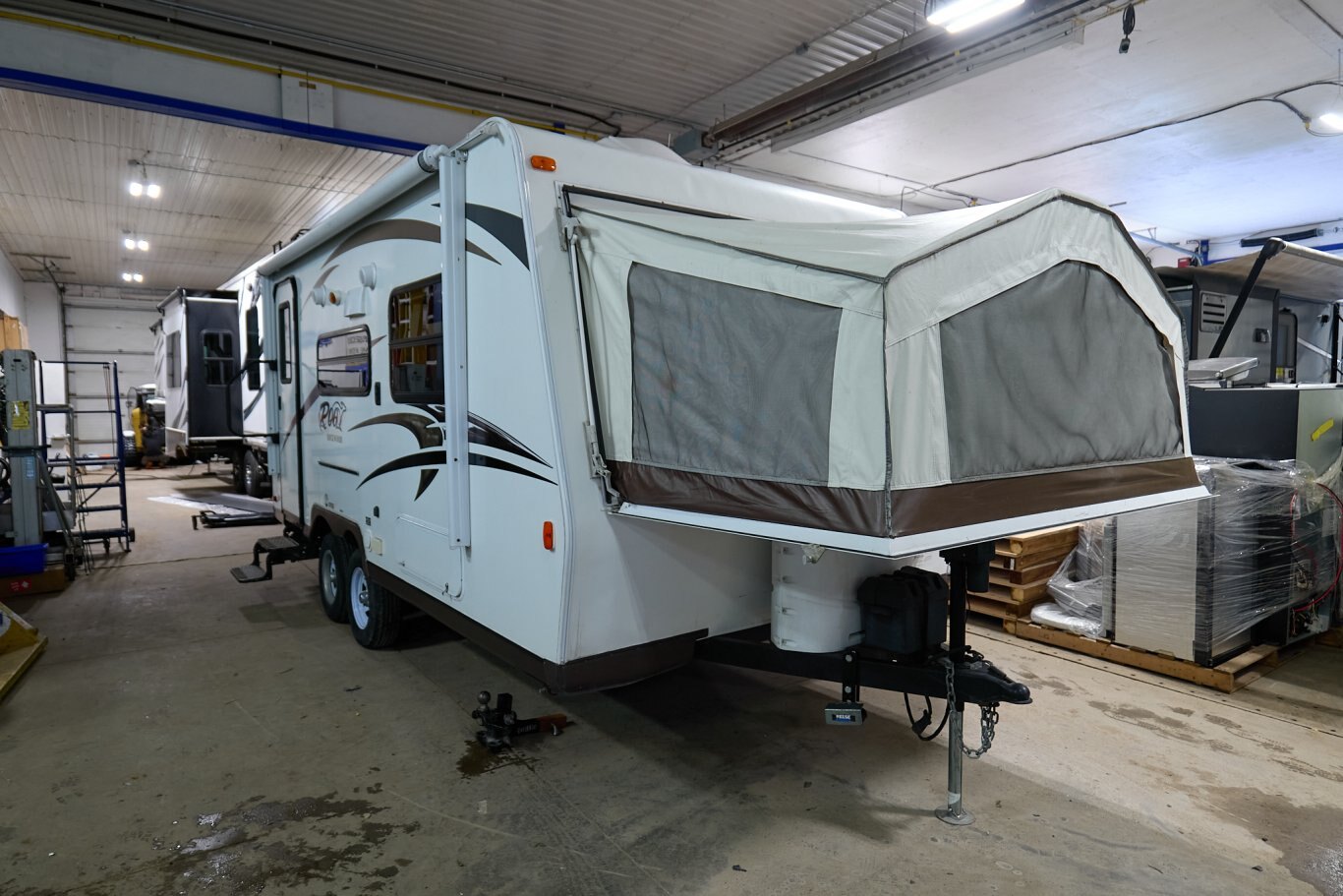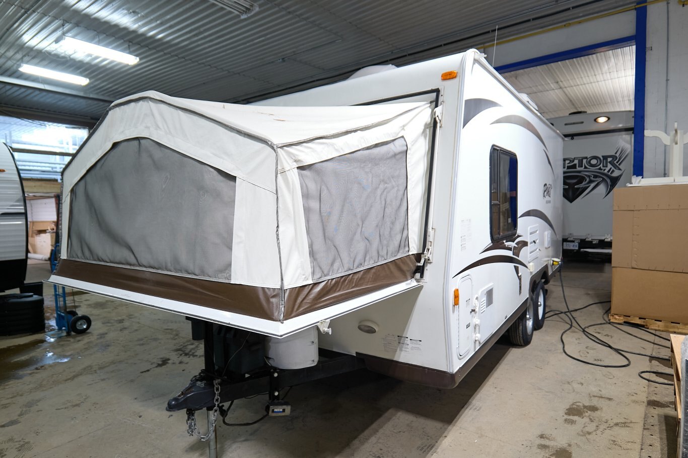 Looking for the perfect getaway vehicle? Check out this 2014 Rockwood Roo M19, affectionately known as "OtherKnown." This hybrid travel trailer is the ideal companion for both seasoned adventurers and those new to the RV lifestyle. With a length of 19 feet, it's compact enough to tow with ease, yet spacious enough to comfortably accommodate your family or friends. The Roo M19 is all about maximizing space and comfort, making it a fantastic choice for your next road trip. Step inside and you'll find a cozy interior that cleverly combines functionality with style. The living area is designed to make you feel right at home, featuring a versatile dinette that easily converts into a sleeping area. With a total sleeping capacity for up to six people, thanks to the expandable tent beds at both ends, you'll have plenty of room for everyone. The kitchen is equipped with all the essentials, including a fridge, microwave, and a three-burner stove, so you can whip up your favorite meals on the go. Plus, the bathroom comes with a shower and toilet, offering all the comforts of home. On the outside, the Rockwood Roo M19 boasts a durable and sleek design. The lightweight construction makes it easy to tow, while the sturdy build ensures it can handle all your adventures. With a dry weight of just over 1,800 kilograms, it's a breeze to hitch up and hit the road. Whether you're planning a weekend getaway or an extended vacation, "OtherKnown" is ready to take you there in style and comfort. Don't miss out on this fantastic opportunity to own a reliable and well-loved RV. Adventure awaits!