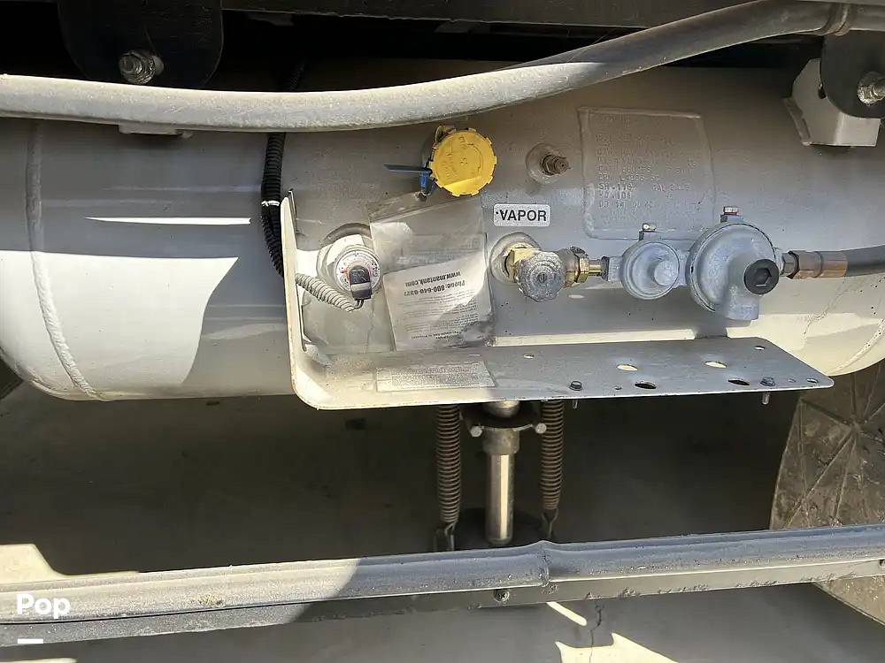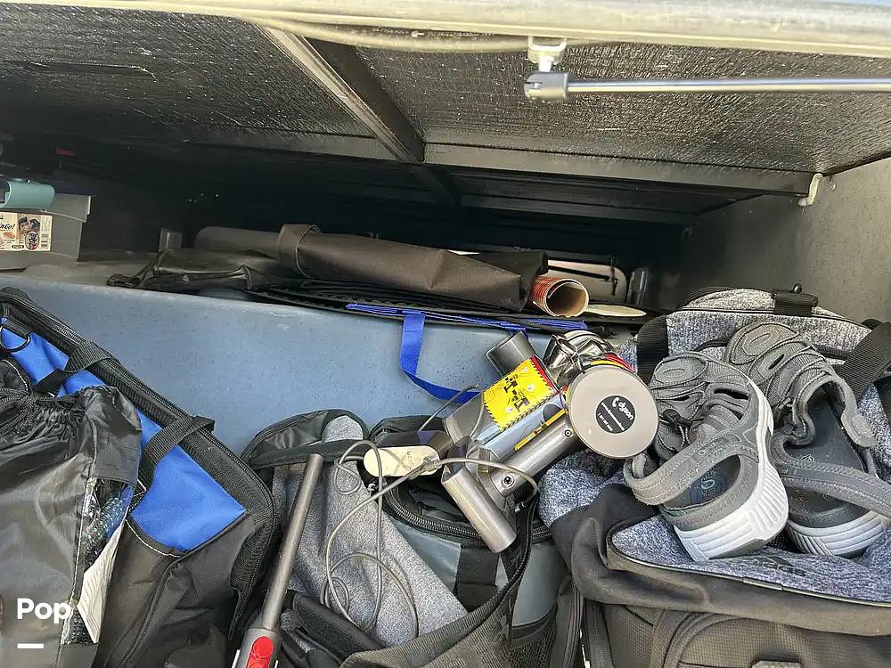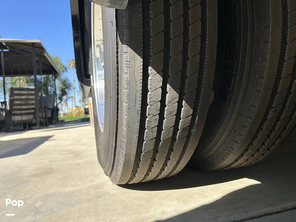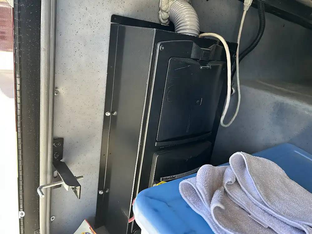 Inside, you'll find all the comforts of home. The living area is equipped with cozy seating and a flat-screen TV, making it a great spot for movie nights or catching up on your favorite shows. The kitchen is fully equipped with a refrigerator, stove, and microwave, so you can whip up delicious meals on the go. Plus, there's ample storage throughout the RV, so you can bring along all your essentials without feeling cramped.