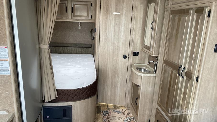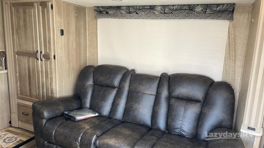 This RV features one slide-out, which significantly expands the living area, providing ample space for relaxation and entertainment. Inside, you'll find accommodations to sleep up to four people, making it ideal for family trips or a getaway with friends. The interior is thoughtfully designed with modern amenities and finishes, ensuring you have everything you need on the road. The kitchen is equipped with essential appliances, allowing you to prepare meals with ease, while the cozy dining area is perfect for enjoying them.