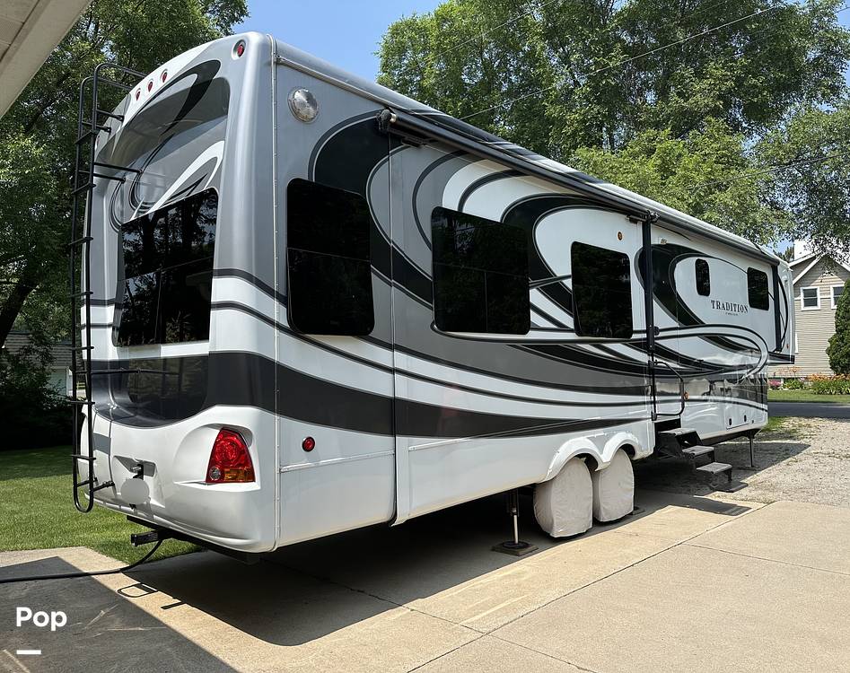 Introducing the 2015 DRV Tradition 375KPS Fifth Wheel, a remarkable blend of luxury and functionality designed for the discerning traveler. This meticulously crafted RV offers a spacious and comfortable retreat, perfect for both short getaways and extended adventures. With a length of 31 feet, this fifth wheel provides ample space without sacrificing maneuverability, making it an ideal choice for those seeking both comfort and convenience on the road.