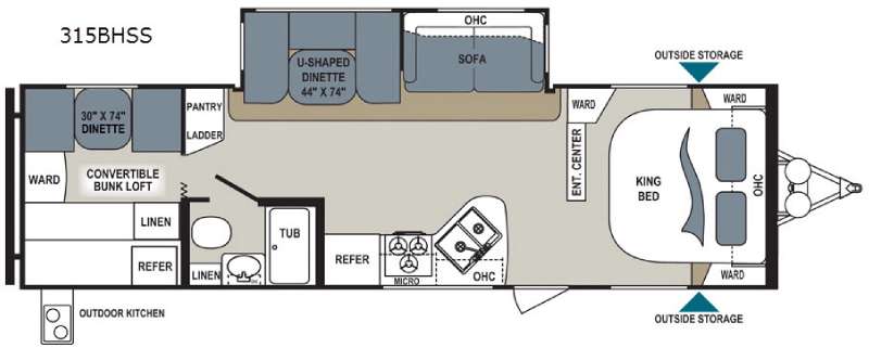 Introducing the 2015 Dutchmen RV Aerolite 315BHSS Travel Trailer, a remarkable blend of comfort, functionality, and style, designed to elevate your travel experiences. This meticulously crafted RV features a single slide-out, expanding the living space to provide a more comfortable and spacious environment for you and your loved ones. With a length of 28 feet, this travel trailer offers a perfect balance of maneuverability and ample interior space, making it an ideal choice for both seasoned travelers and those new to the RV lifestyle.