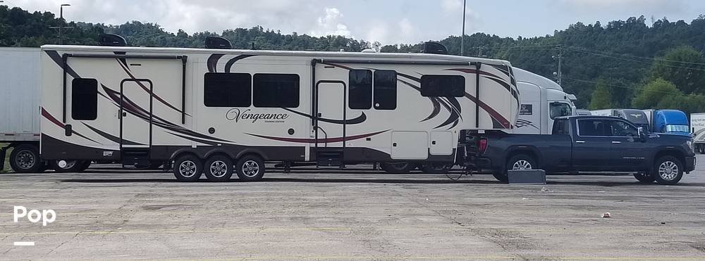 Measuring an impressive 36 feet in length, the Vengeance 39R12 offers ample room for relaxation and entertainment. Inside, you'll find a well-appointed living area with plush seating, a fully equipped kitchen with modern appliances, and a cozy dining space. The sleeping arrangements are thoughtfully designed, featuring a master bedroom, convertible sofas, and additional sleeping areas to ensure everyone gets a restful night's sleep. The bathroom facilities are equally impressive, providing all the comforts of home while you're exploring the great outdoors.