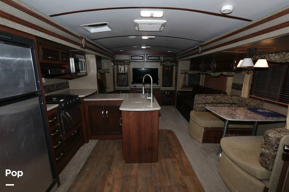Measuring approximately 31 feet in length, the Keystone Outback Super-Lite is expertly crafted to provide ample living space without compromising on maneuverability. Inside, you'll find a well-appointed kitchen equipped with modern appliances, a welcoming living area with plush seating, and a dining space perfect for family meals or game nights. The master bedroom offers a private retreat with a comfortable bed, while additional sleeping arrangements include convertible furniture that maximizes space and functionality.