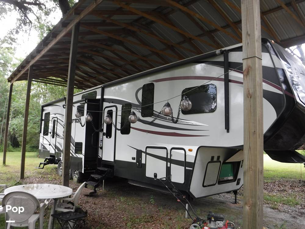 Discover the ultimate adventure companion with the 2015 Keystone Raptor 415RP Fifth Wheel, a luxurious and spacious RV designed to elevate your travel experiences. Measuring an impressive 35 feet in length, this RV offers ample space and comfort for families and groups, accommodating up to seven sleepers with ease. Whether you're embarking on a weekend getaway or an extended road trip, the Raptor 415RP ensures that you travel in style and comfort.