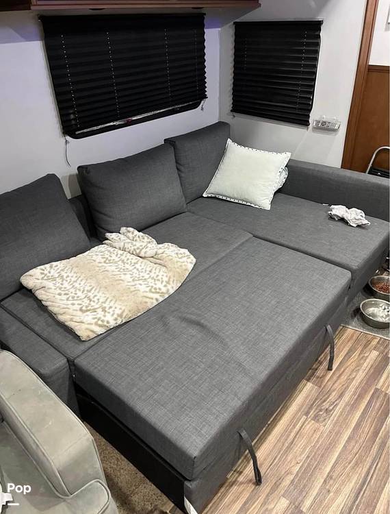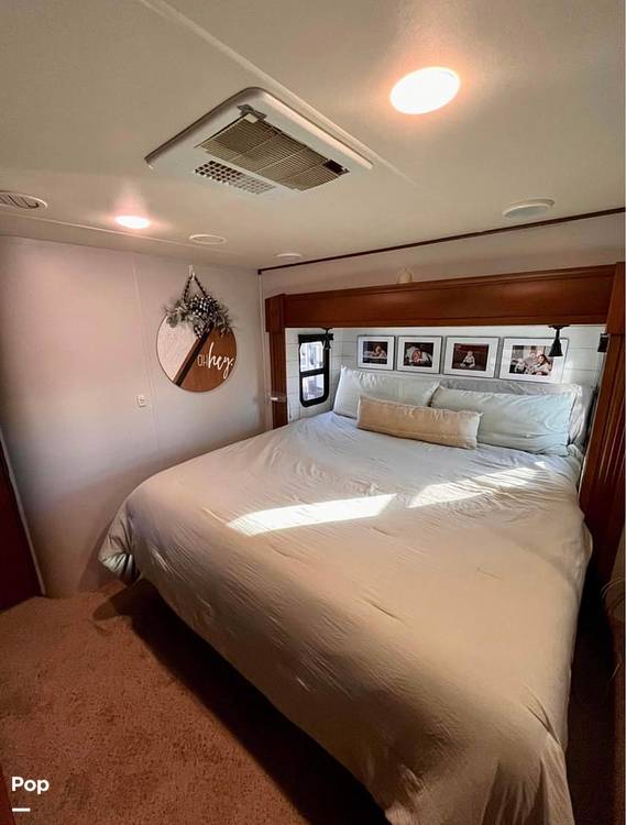 Inside, you'll find a well-equipped kitchen ready for all your culinary creations, complete with modern appliances and ample storage. The living area is perfect for kicking back, featuring plush seating and a large TV for those movie nights under the stars. The master bedroom offers a comfy queen-size bed, while the additional sleeping areas ensure everyone has a cozy spot to rest. Plus, the bathroom is designed with all the comforts of home, so you can freshen up with ease.
