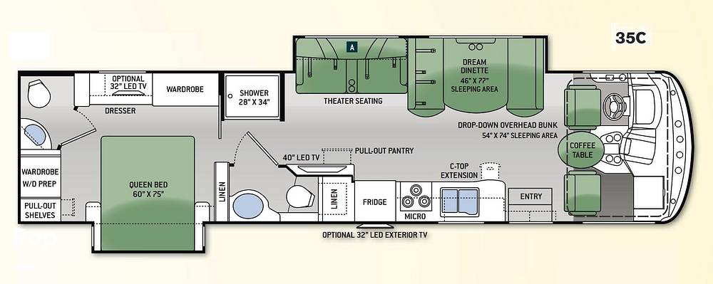 The Windsport 35C boasts a substantial fuel capacity of 303 liters, ensuring you can journey further with fewer stops, allowing you to focus on the road ahead and the destinations that await. Its impressive length of 31 feet provides ample living space without compromising on maneuverability, making it an ideal choice for both seasoned travelers and those new to the RV lifestyle. Inside, you'll find a well-appointed kitchen, a cozy living area, and sleeping quarters designed to provide restful nights after days filled with exploration.