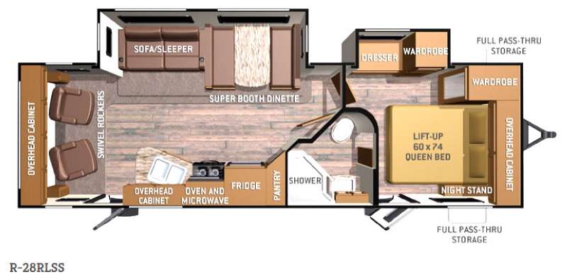 The Cruiser Radiance R-28RLSS features two slide-outs, significantly enhancing the interior space and providing a roomy atmosphere for up to five occupants. The intelligently designed layout includes a cozy sleeping area, a well-equipped kitchen, and a comfortable living space, ensuring that every journey is as enjoyable as the destination. The RV's thoughtful design and quality craftsmanship are evident in every detail, from the durable materials used throughout to the modern amenities that cater to your every need.