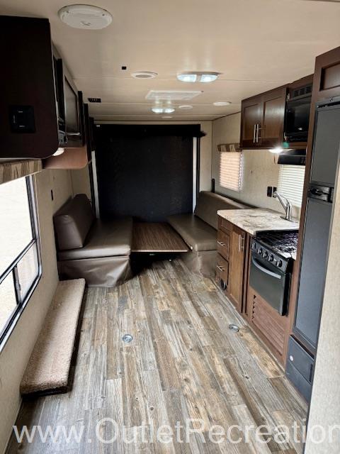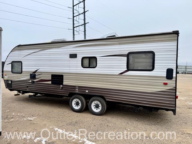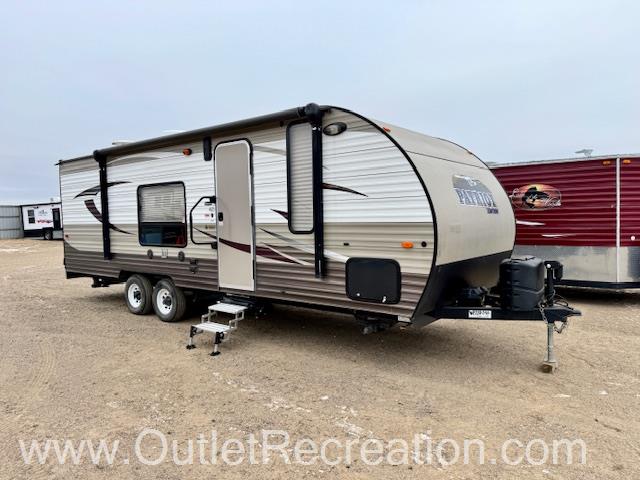 Inside, the Grey Wolf Patriot 25RR comfortably sleeps up to four people, making it perfect for small families or couples seeking a getaway. The interior is thoughtfully designed to maximize space and functionality, featuring a cozy sleeping area, a well-equipped kitchen, and a comfortable living space. The kitchen includes essential appliances and ample storage, allowing you to prepare meals with ease. The living area provides a welcoming space to relax after a day of adventure, complete with seating that can be converted into additional sleeping space if needed.