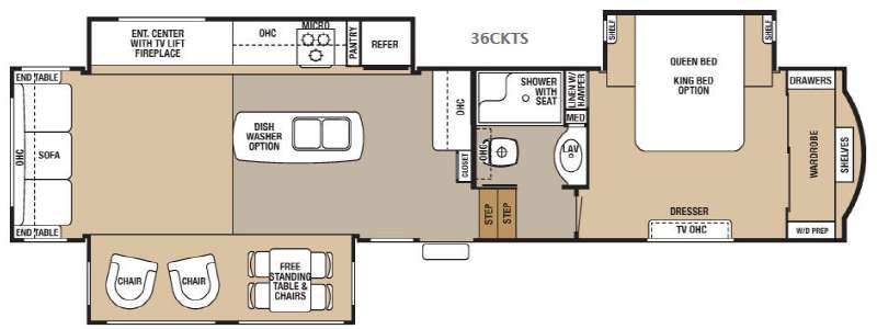 The Cedar Creek Hathaway Edition features three slide-outs, significantly enhancing the living area and providing a spacious environment for up to four occupants. The interior is thoughtfully designed with high-quality finishes and modern amenities, ensuring a comfortable and stylish living space. The well-appointed kitchen is equipped with top-of-the-line appliances, ample storage, and a generous countertop area, making meal preparation a breeze. The living area is designed for relaxation, featuring plush seating and entertainment options to suit all your needs.