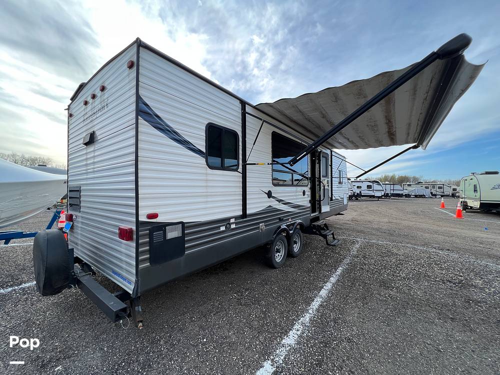 Inside, the Kingsport 29SBSE comfortably sleeps up to six people, making it perfect for family trips or getaways with friends. The interior layout is thoughtfully designed to maximize space and functionality. You'll find a cozy queen-sized bed, a convertible dinette, and a comfortable sofa that easily transforms into additional sleeping areas. The fully equipped kitchen features a refrigerator, microwave, and stove, allowing you to prepare meals with ease. The bathroom includes a shower, sink, and toilet, ensuring all the comforts of home are at your fingertips.