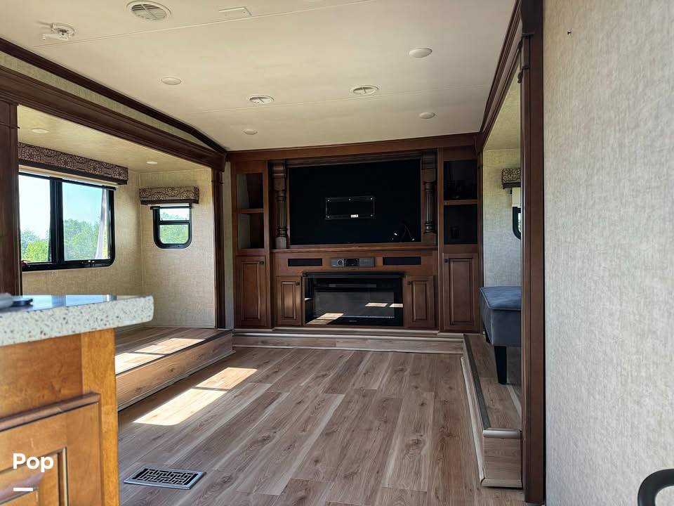 At 34 feet long, this RV offers plenty of space to stretch out and enjoy your surroundings. Inside, you'll find all the amenities you need to feel right at home. The living area is spacious and inviting, with plush seating that's perfect for lounging after a day of exploring. The kitchen is fully equipped, so you can whip up your favorite meals on the road. And with ample storage throughout, you can bring along all your essentials without feeling cramped.
