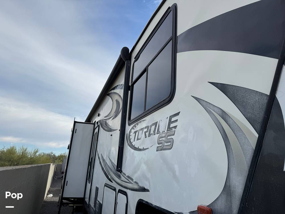 Discover the ultimate adventure companion with the 2016 Heartland Torque Toy Hauler Series M-396 Fifth Wheel. This exceptional RV is designed for those who crave the thrill of the open road without sacrificing the comforts of home. With a spacious interior that can comfortably sleep up to eight people, this toy hauler is perfect for family getaways or trips with friends. Measuring an impressive 33 feet in length, the Torque M-396 offers ample space for relaxation and entertainment, ensuring every journey is as enjoyable as the destination.