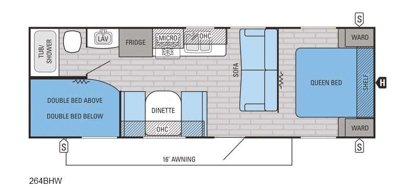 Weighing approximately 2,066 kilograms, the Jayco Jay Flight SLX 264BHW is engineered for easy towing, allowing you to explore diverse landscapes with confidence and ease. The interior is meticulously designed to maximize space and functionality, featuring a well-appointed kitchen, a cozy dining area, and ample sleeping arrangements. The intelligently designed floor plan includes bunk beds, a convertible dinette, and a comfortable queen-sized bed, ensuring restful nights for all travelers.