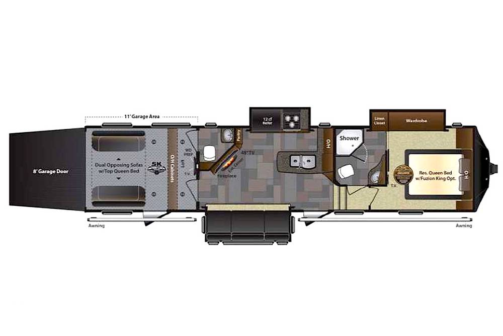 Step inside and be greeted by a thoughtfully designed living space that combines style and practicality. The Fuzion 371 features a well-appointed kitchen equipped with modern appliances, ensuring you can prepare delicious meals on the go. The cozy living area invites relaxation with plush seating and entertainment options, perfect for unwinding after a day of exploration. The sleeping arrangements are versatile and comfortable, with a master bedroom, convertible sofas, and additional sleeping spaces to suit your needs.