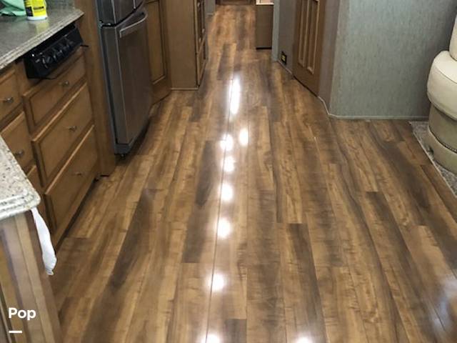 Step inside, and you'll find a spacious and well-designed interior that feels just like home. The living area is perfect for relaxing after a day of adventure, with cozy seating and a flat-screen TV for entertainment. The kitchen is fully equipped with everything you need to whip up delicious meals on the go, including a stove, microwave, and a roomy fridge. Plus, there's plenty of storage space for all your travel essentials.
