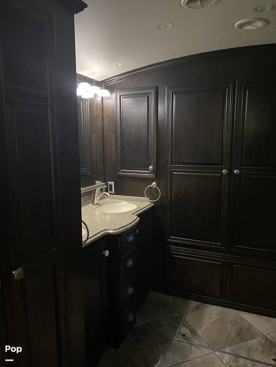 Inside, you'll find a cozy setup that can comfortably sleep up to six people. The spacious interior features a well-equipped kitchen, perfect for whipping up your favorite meals on the go. The living area is designed for relaxation, with plush seating and a flat-screen TV to keep everyone entertained. The master bedroom offers a comfy queen-sized bed, while the convertible sofa and dinette provide additional sleeping options for family or friends.