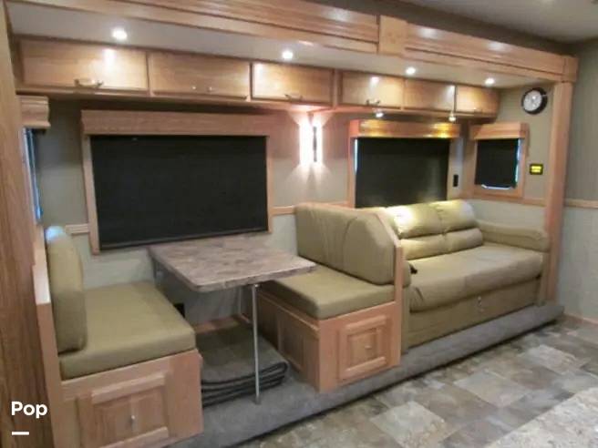 Inside, the Show Hauler 33 Class C is thoughtfully designed to sleep up to six people comfortably. The well-appointed interior features a master bedroom, a convertible dinette, and a cozy overhead bunk, ensuring everyone has a restful night's sleep. The kitchen is equipped with modern appliances, including a refrigerator, stove, and microwave, allowing you to prepare meals with ease. The spacious bathroom offers a full shower, sink, and toilet, providing all the comforts of home while on the road.