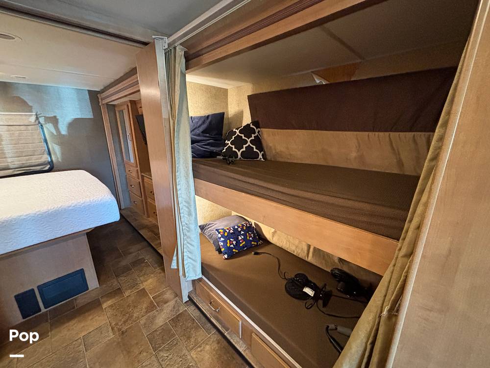 This RV is engineered to accommodate up to 10 sleepers, making it perfect for large families or groups of friends. The well-thought-out floor plan includes a master bedroom, convertible sofa beds, and a bunkhouse, providing versatile sleeping arrangements to suit your needs. The interior is crafted with quality materials and finishes, offering a cozy and inviting atmosphere. The kitchen is fully equipped with modern appliances, allowing you to prepare meals with ease, while the spacious living area is perfect for unwinding after a day of exploration.
