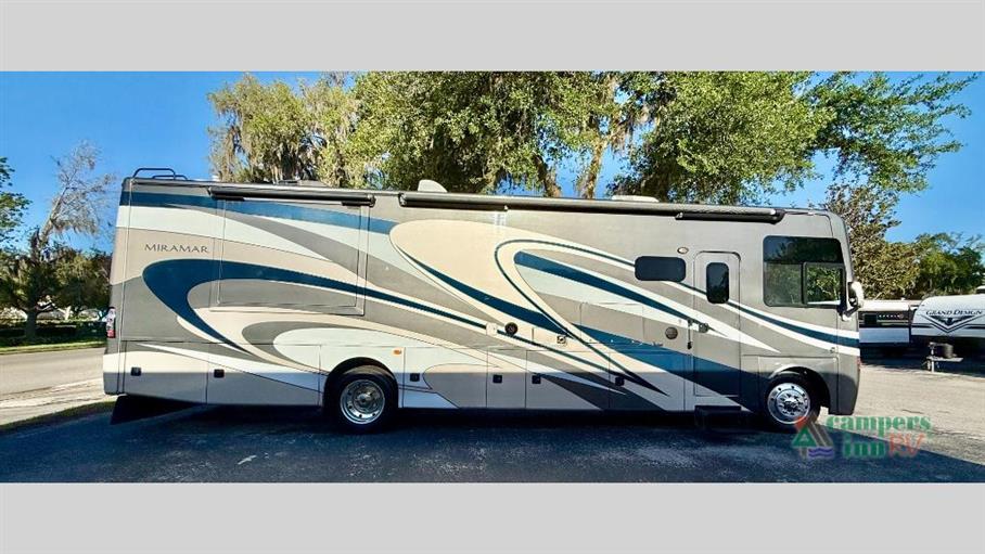 The Thor Motor Coach Miramar 34.1 is equipped with a host of amenities to ensure a comfortable and enjoyable journey. The fully equipped kitchen includes a refrigerator, stove, oven, and microwave, allowing you to prepare meals with ease. The spacious bathroom features a shower, sink, and toilet, providing all the conveniences of home. Additionally, the RV is fitted with modern entertainment options, including a flat-screen TV and sound system, ensuring that relaxation and leisure are always at your fingertips. Experience the perfect blend of luxury and functionality with this exceptional motorhome, and make your travel dreams a reality.