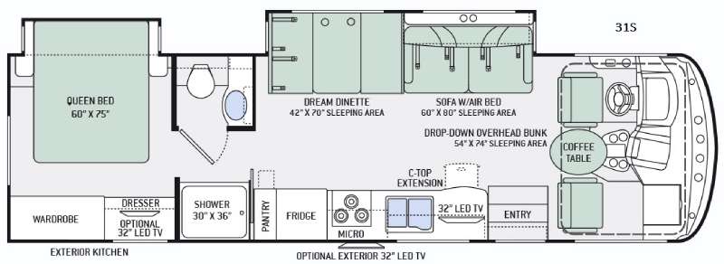 The Windsport 31S features two expansive slide-outs, ingeniously maximizing the interior space to provide a comfortable living environment. This motorhome can accommodate up to eight people, ensuring ample sleeping arrangements for family and friends. The thoughtfully designed layout includes a master bedroom, convertible sofa beds, and additional sleeping options, all crafted to offer a restful retreat after a day of exploration. Measuring 26 feet in length, this RV strikes the perfect balance between spaciousness and maneuverability, making it suitable for both short getaways and extended road trips.