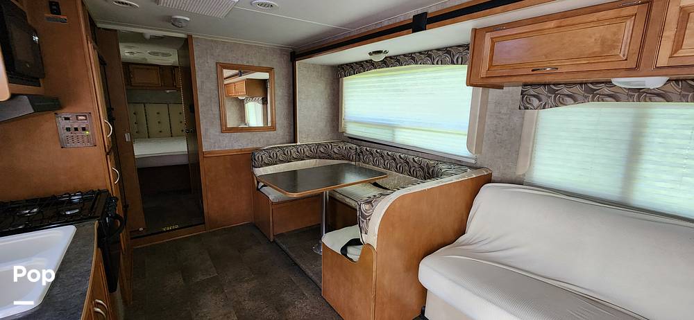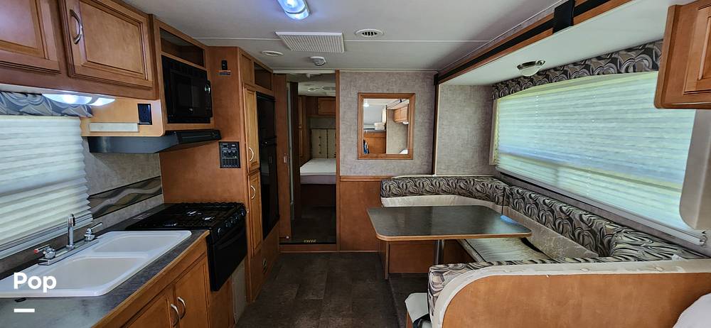 Measuring approximately 26 feet in length, the Minnie Winnie offers ample space to accommodate up to eight sleepers comfortably. Whether you're planning a weekend getaway or an extended road trip, you'll appreciate the well-designed layout that includes a cozy sleeping area, a fully-equipped kitchen, and a comfortable living space. The kitchen comes with all the essentials, including a refrigerator, microwave, and stove, making it easy to whip up your favorite meals on the go. Plus, the dining area is perfect for enjoying meals together or playing games on those rainy days.