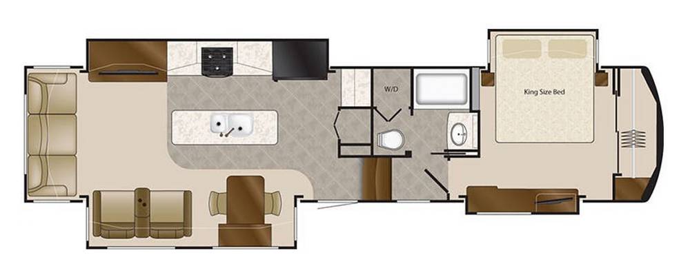 Inside, the DRV Mobile Suites 38RSSA comfortably accommodates up to four guests, ensuring a restful night's sleep for everyone. The master suite features a plush queen-sized bed, while the living area includes a convertible sofa bed, perfect for additional guests. The interior is adorned with high-quality finishes and modern amenities, including a fully equipped kitchen with premium appliances, a cozy dining area, and a spacious bathroom with a large shower. The elegant design and thoughtful layout provide a home-like atmosphere, allowing you to travel without compromising on comfort.