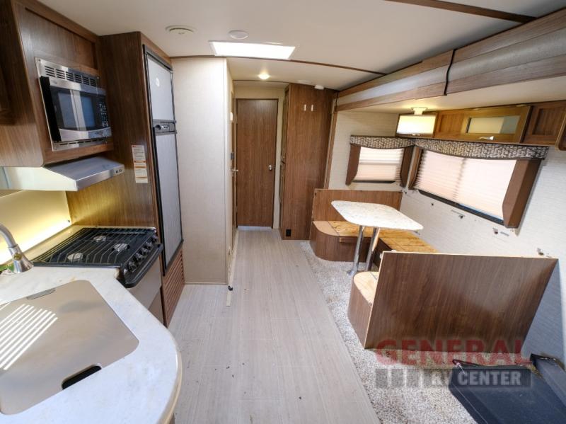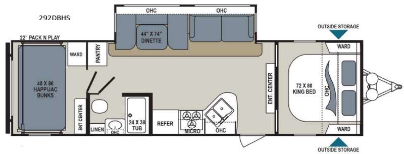 The Aerolite 292DBHS features a single slide-out, expanding the living space to create a more open and airy atmosphere. This travel trailer is thoughtfully designed to accommodate up to eight people, making it ideal for family vacations or group outings. Inside, you'll find a well-appointed interior with modern amenities, including a fully equipped kitchen, a cozy dining area, and comfortable sleeping arrangements. The intelligently designed floor plan ensures that every inch of space is utilized efficiently, providing both comfort and convenience.