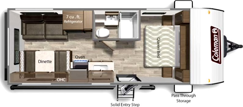 Step inside and be greeted by a thoughtfully designed interior that maximizes space and functionality. The Coleman 202RDWE features a cozy living area with ample seating, perfect for relaxing after a day of adventure. The well-equipped kitchen boasts modern appliances, including a refrigerator, microwave, and stove, allowing you to prepare delicious meals on the go. The inviting dining area provides a comfortable space to enjoy your culinary creations or plan your next destination. With plenty of storage options, you can bring along all your essentials and more.