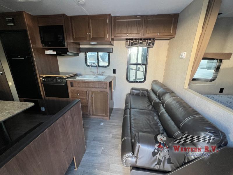 Weighing in at approximately 2,102 kilograms, this RV is built for both durability and ease of towing. Inside, you'll find a well-thought-out layout that maximizes space and comfort. The sleeping arrangements include a cozy queen bed, a set of bunk beds, and a convertible dinette and sofa, ensuring everyone has a comfy place to rest after a day of adventure. The kitchen is equipped with all the essentials, including a refrigerator, microwave, and stove, making meal prep a breeze.