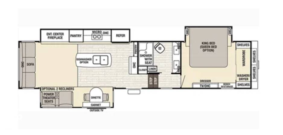 Outside, the Cedar Creek Champagne 38EL is just as impressive. Its sleek design and durable construction make it a reliable companion on any journey. With plenty of storage space, you can bring along all your adventure gear. Whether you're parked by a serene lake or nestled in a forest, this RV provides the perfect base for making unforgettable memories. Don't miss the opportunity to own this exceptional fifth wheel and embark on your next adventure in style and comfort!