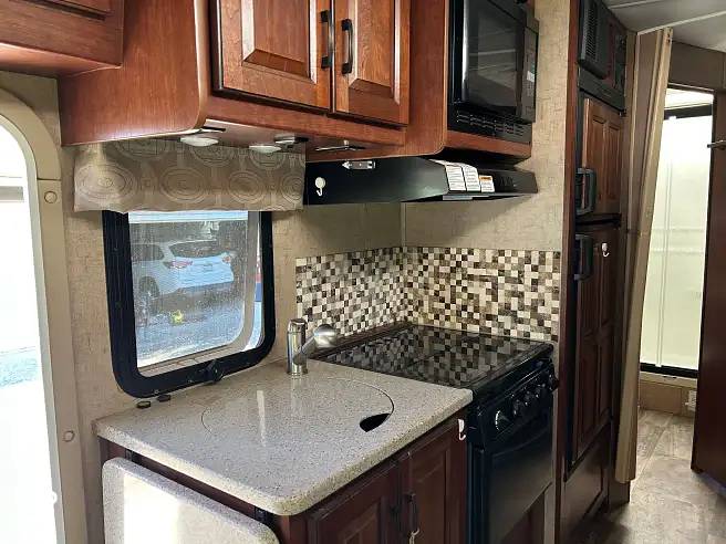 Equipped with a fuel capacity of 91 liters, this RV ensures you can travel longer distances with fewer stops, allowing you to focus on the journey ahead. The Forester 2401W features a well-appointed interior with sleeping arrangements that include a cozy overhead bunk, a convertible dinette, and a comfortable rear bed. The kitchen is fully equipped with modern appliances, including a refrigerator, microwave, and stove, making meal preparation a breeze wherever you are.